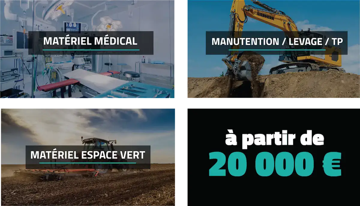 Yooliz vous guide et vous accompagne également sur vos besoins en biens d’équipement ! Biens de manutention, levage, TP ou encore médicaux en passant par des biens pour les espaces verts, nous vous proposons une solution de financement via notre partenaire en location avec option d’achat !